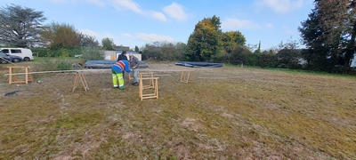 Montage des cadres, pose des fils pour les 5 bandes, vérifications ,remise en état des lignes a retard.