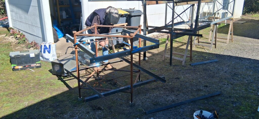 Nous nous sommes retrouvés au radio club F6KJS ( F1MNQ, F4EHA, F4GCZ, SWL Richard) pour une journée de travail dédiée à la réalisation des chaises qui serviront à soutenir les différents pylônes. L’objectif était de créer des supports robustes et adaptés aux structures de transmission.