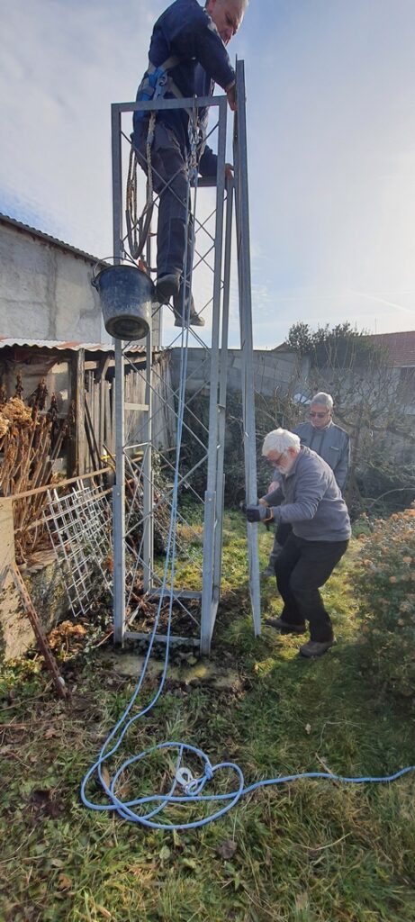 Un remerciement tout particulier à Tony F8ATS, spécialement venu de la région parisienne. Grand spécialiste des pylônes ADOKIT, il a guidé l’équipe avec professionnalisme, rendant l’opération rapide, sûre et sans difficulté. Son savoir-faire a été précieux à chaque étape, du démontage au chargement.